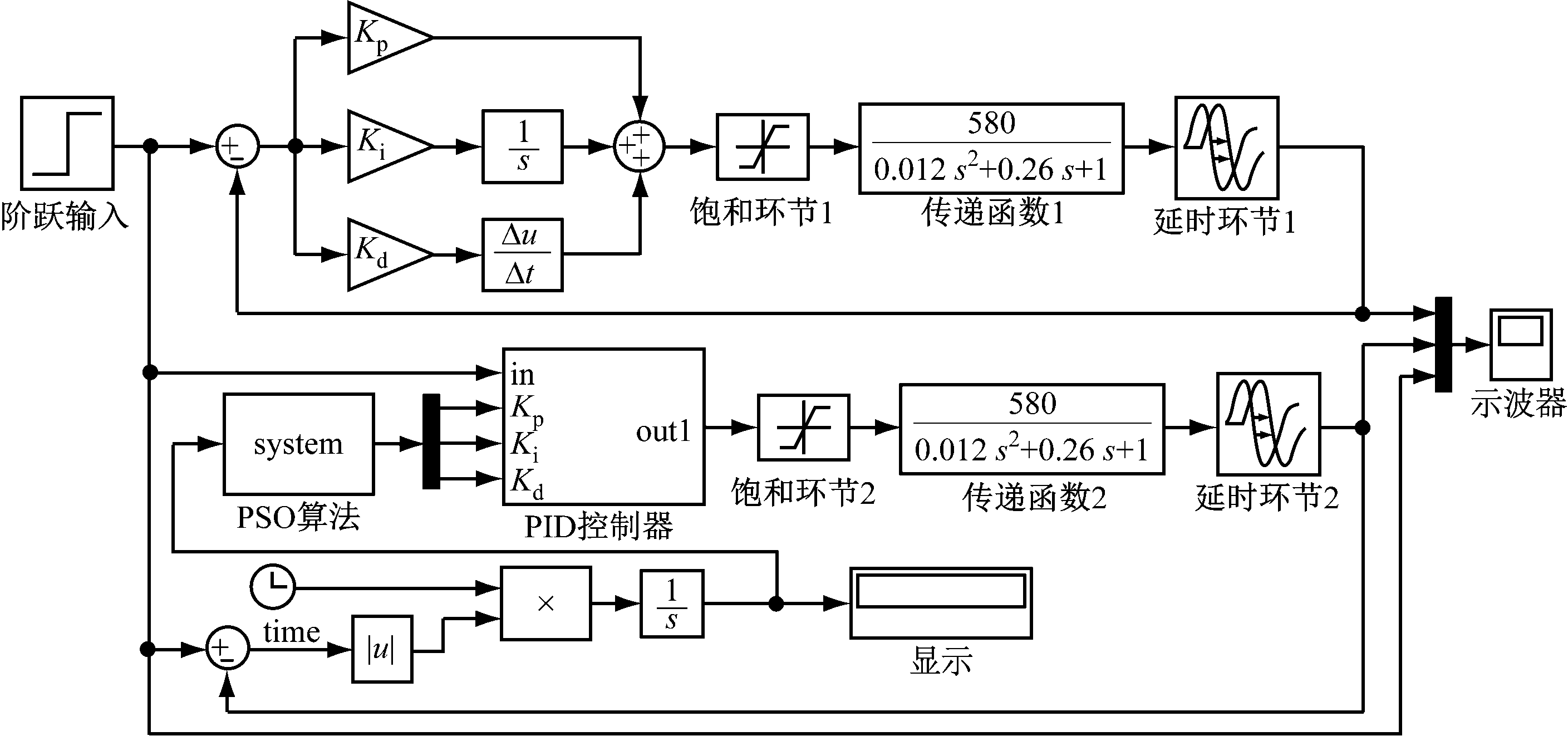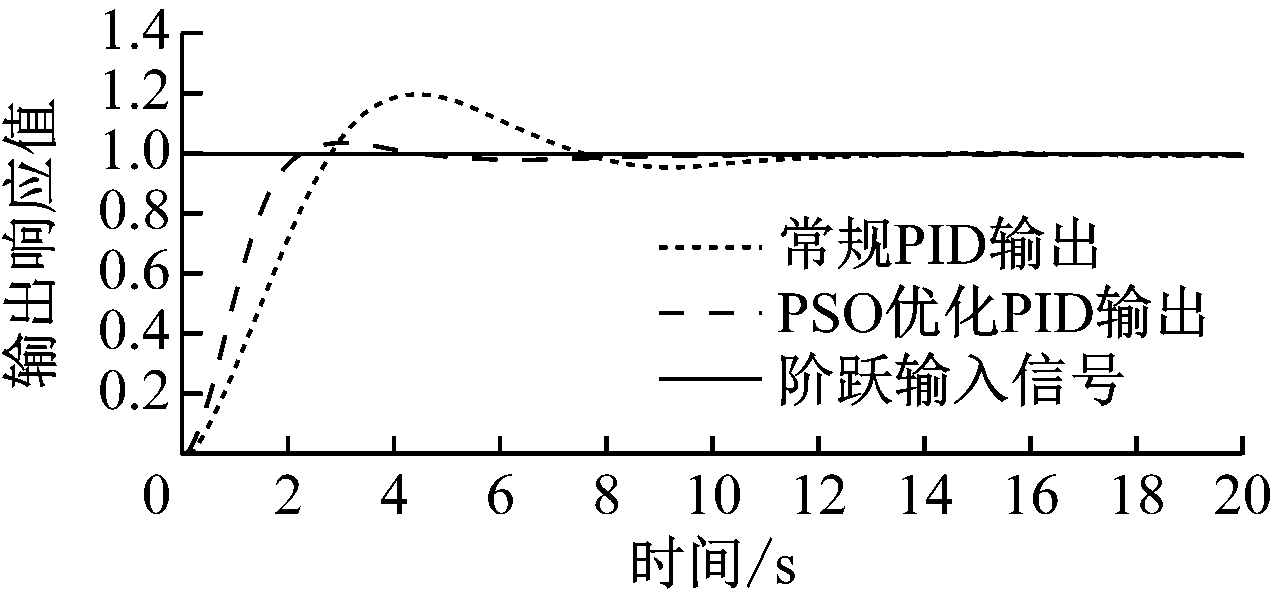 从图8可看出,PSO优化PID控制器的控制效果明显优于常规PID控制器,尤其是超调量和调节时间远远优于常规PID控制器。