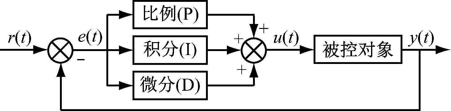 式中:u(t)为控制量输出;Kp,Ki,Kd分别为比例(P)、积分(I)、微分(D) 3个环节的参数;e(t)为系统误差,e(t)=r(t)-y(t),r(t)为系统给定输入信号,y(t)为系统被控量。