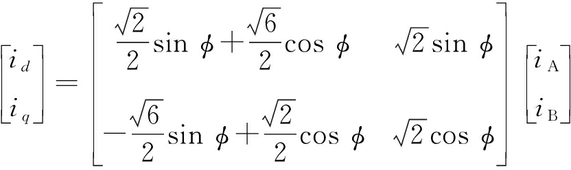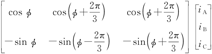 式中:id,iq分别为定子电流d,q轴分量;φ为电角度;iA,iB,iC为各相绕组电流。