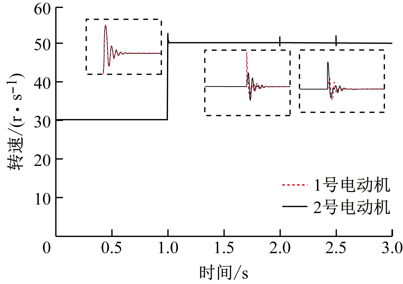 针对电动机交叉耦合控制的精度、抗扰动性能及电动机转速跟随性等,许多学者进行了深入研究,取得了一定成果[3-5]。在电动机运行控制中,比例-积分(Proportion Integration, PI)参数对系统响应速度和稳定性有重要影响,需进行优化设置。王建红等[6]利用交叉耦合控制方法对双电动机同步控制系统进行了研究,提高了同步控制精度,但缺少PI参数整定过程。苏学满等[7]运用交叉耦合控制对四轮毂电动机同步控制策略进行了研究,证明了交叉耦合控制策略同步性好、抗干扰能力强,但同样缺少控制器参数整定过程。李言民等[8]研究了基于模糊PID控制器的多电动机交叉耦合控制同步控制系统,但缺少实际应用。