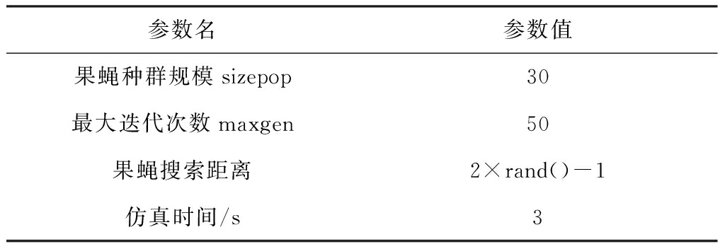 参数名参数值果蝇种群规模sizepop30最大迭代次数maxgen50果蝇搜索距离2×rand()-1仿真时间/s3