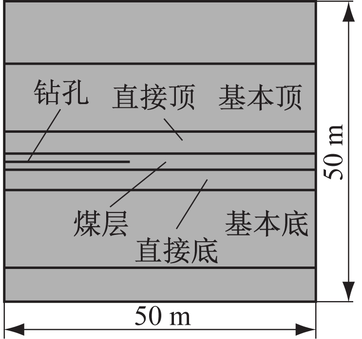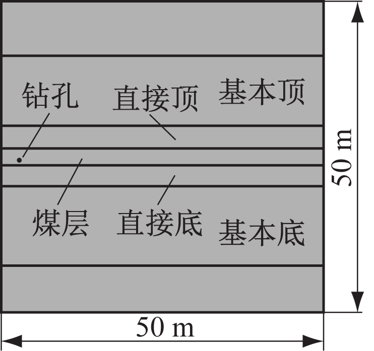 模拟所需基本假设包括[11-14]:① 煤层瓦斯运移符合Darcy定律;② 瓦斯视为可压缩气体,不同压力下瓦斯密度不同;③ 瓦斯运移为恒温过程,不考虑温度影响;④ 抽采负压不随钻孔深度改变;⑤ 瓦斯解吸为瞬态过程;⑥ 煤层均质且各向同性,瓦斯压力不改变煤体孔隙率及渗透率。