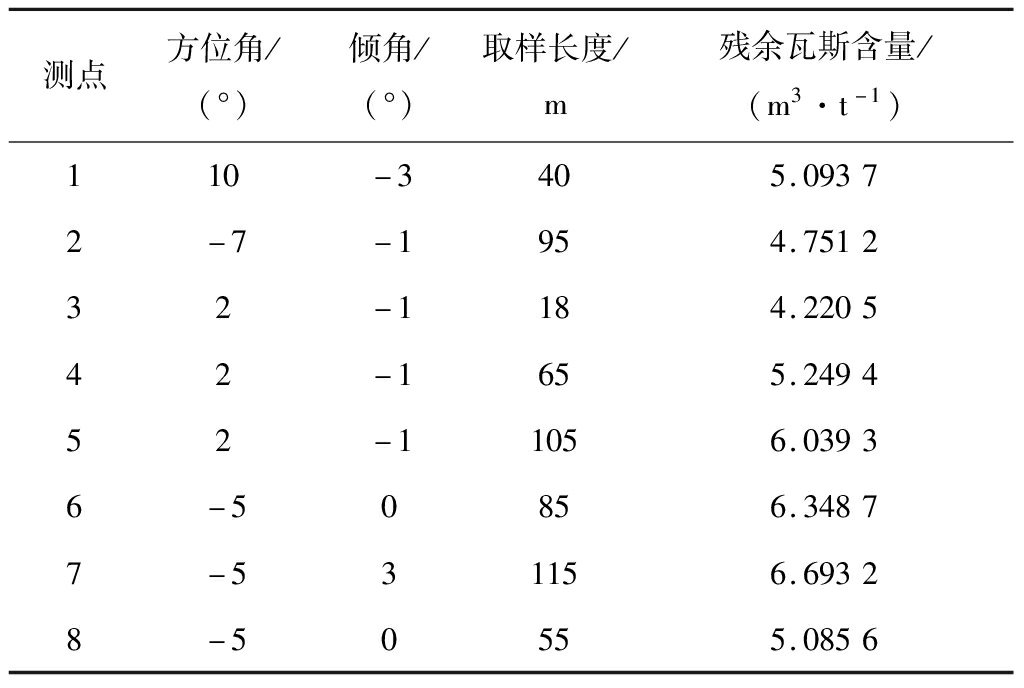 表4 各测点残余瓦斯含量