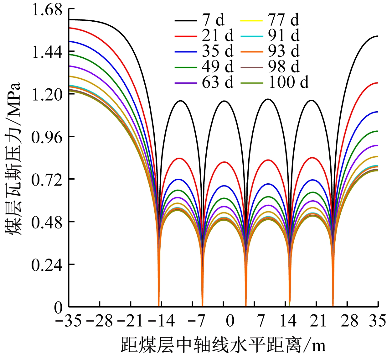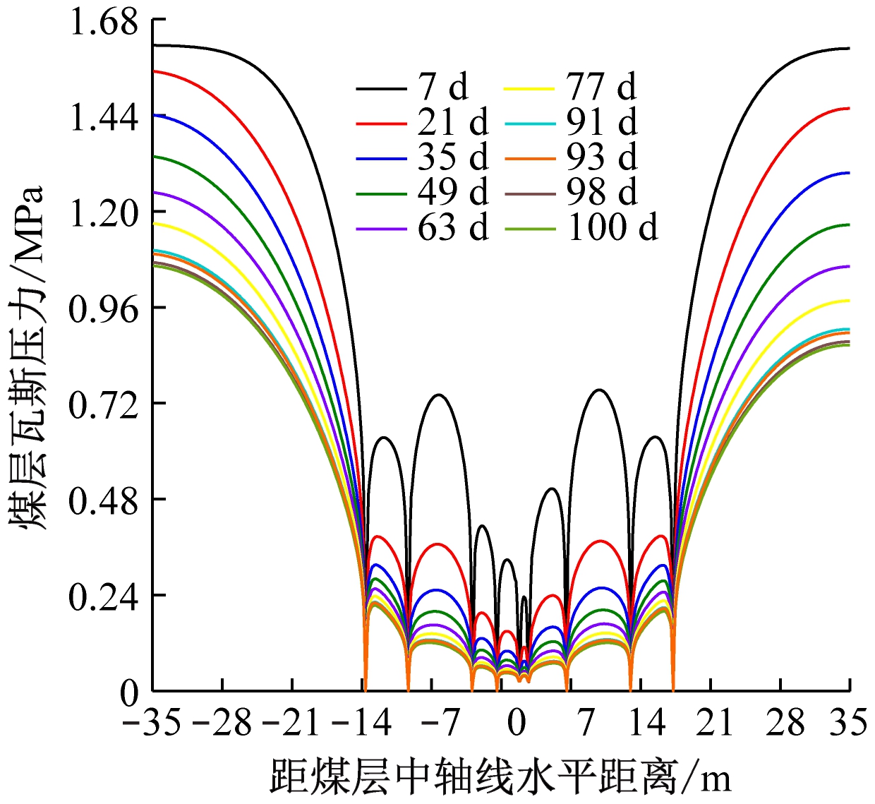 (b)瓦斯压力分布曲线