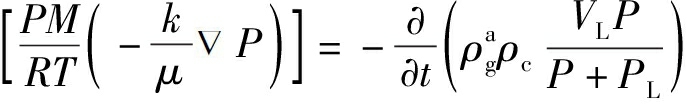 式中:t为渗流时间;ρg为游离瓦斯密度;Ø为孔隙率;