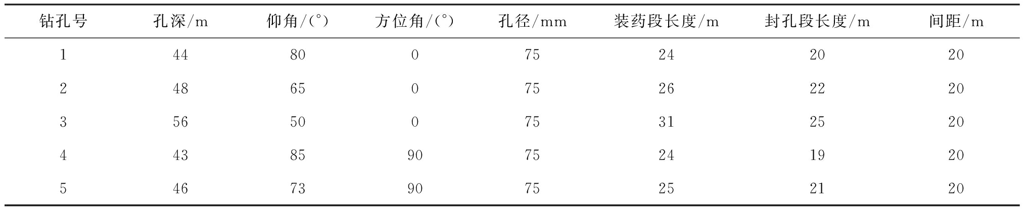 表1 40309运输巷深孔顶板预裂爆破孔技术参数