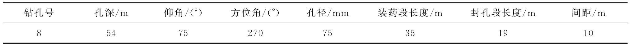 钻孔号孔深/m仰角/(°)方位角/(°)孔径/mm装药段长度/m封孔段长度/m间距/m8547527075351910