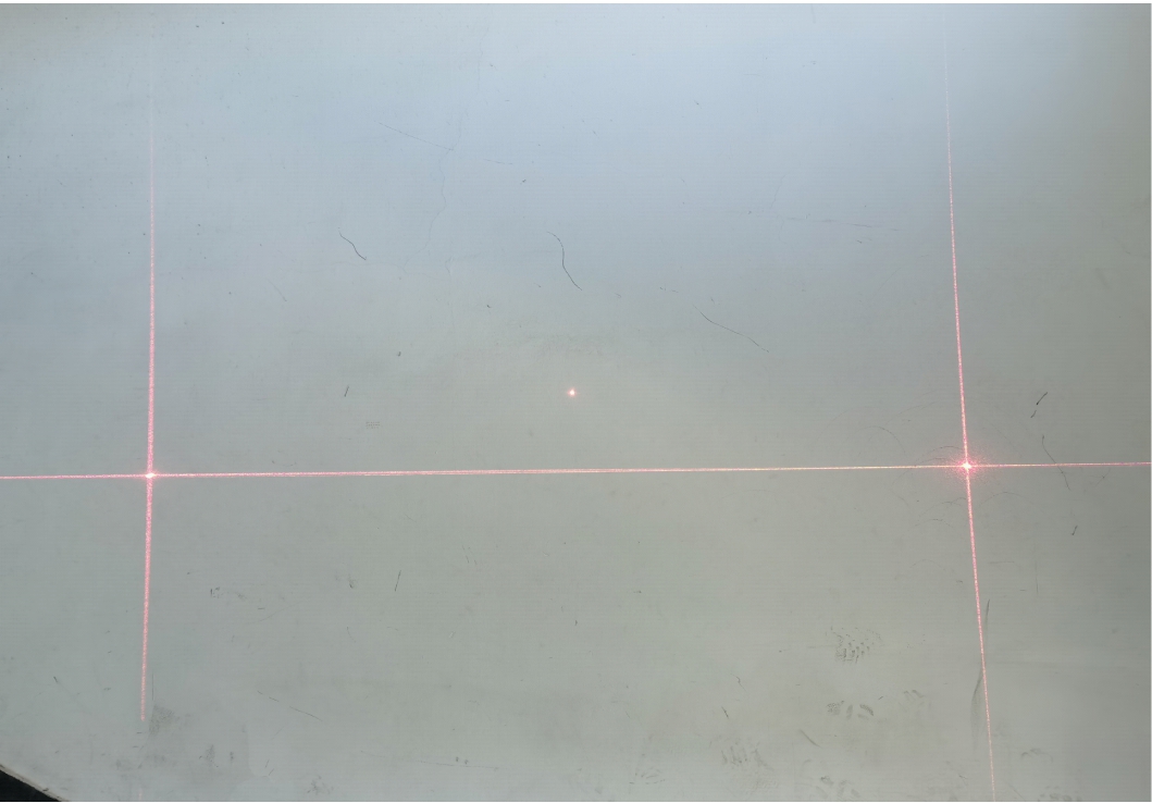为检测截割精度,在掘进机正前位置放置投影面板,两侧地面根据截割断面宽度分别放置1个激光发射器,调整截割臂至机身中线位置,在投影面板上标注巷道断面两帮的激光投影线,作为测量参考线。将磁吸附分光器固定于截割头中点,其在前侧面板的投影点位置即为截割头运动位置。记录分光器在投影面板上的位置与两帮参考线的距离,即截割头的定位控制误差[14]。误差测试现场如图8所示,断面成形误差见表3。
