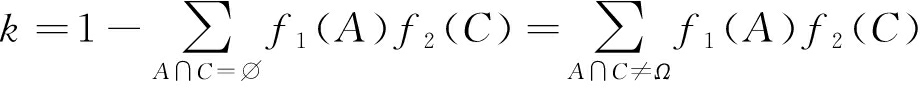 式中:C为2Ω中的命题;k为证据冲突因子,当k=1时,表示命题A,C完全冲突;0<k<1时,表示可对命题A,C进行数据融合。