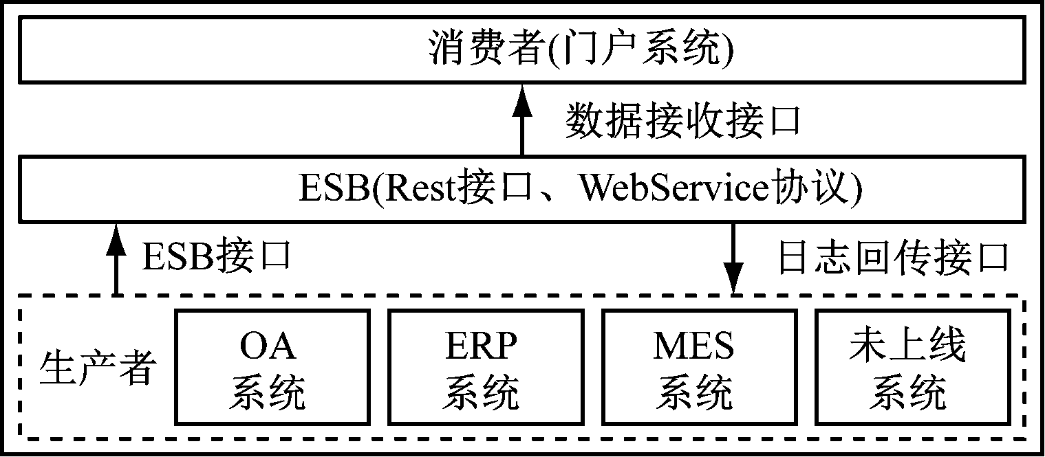 ESB模式按照数据流的传输方向,将访问服务分为生产者(数据提供方)与消费者(数据接收方),如图2所示。生产者在数据发生变化时调用ESB接口传入Json文件,并发起流程;ESB调用数据接收接口,使用单条同步的方式进行状态同步;ESB通过日志回传接口向生产者反馈消费者的状态同步结果。当未来新上线的系统需要通过ESB与数据中台集成时,统一注册并拓展Rest服务接口,使用标准WebService协议实现消息通信、服务检测等功能。