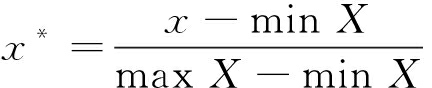 式中:x*为归一化数据;x为原始数据;X为原始数据集。