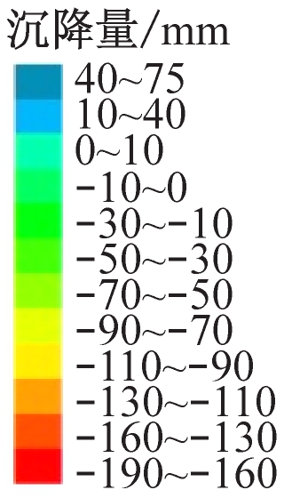 首先对生成的268个干涉对进行差分干涉处理,采用最小费用流方法进行相位解缠,根据干涉图的相干性及解缠结果筛选干涉对;然后选取地表稳定的控制点进行轨道精炼和重新去除平地效应;最后去除大气相位误差,采用最小二乘法计算得到平均沉降速率,结果如图3所示。