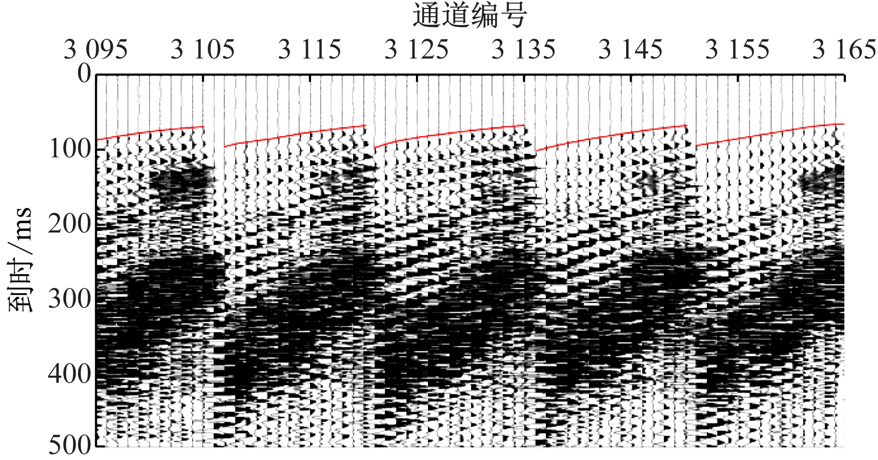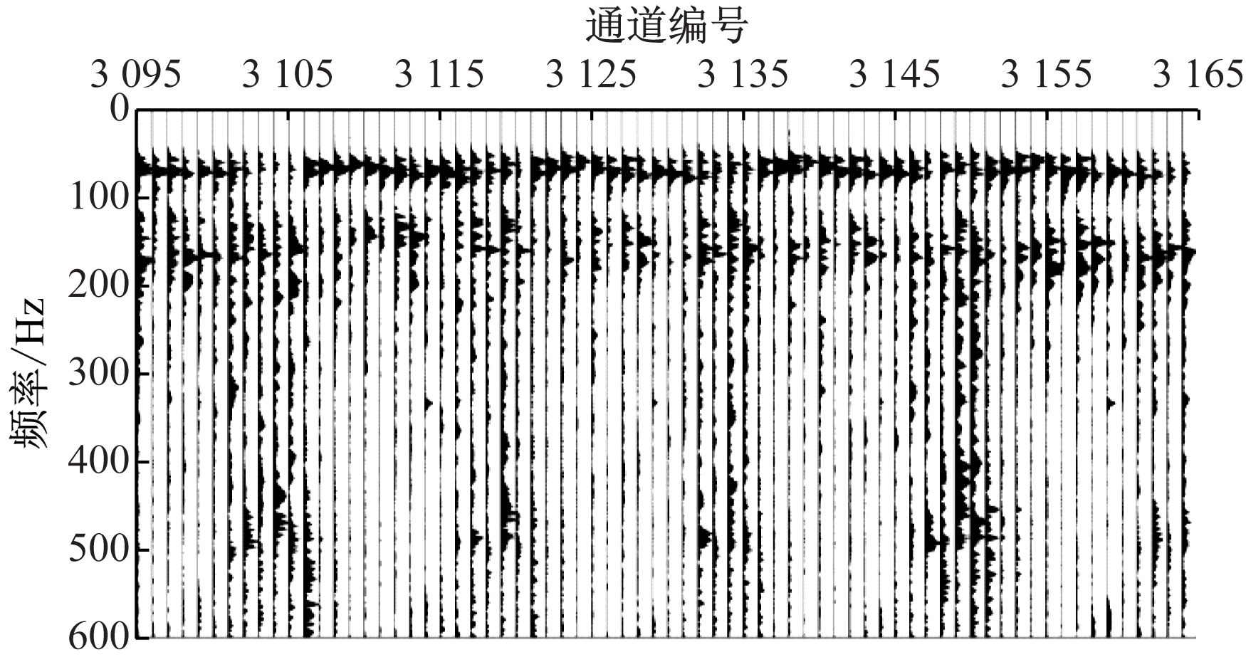 部分实测地震波波形及频谱如图4所示。可看出地震波波形同相轴连续性较好,初至波起跳明显,满足初至到时拾取要求;频谱分辨率高,杂波及背景噪声影响较小。总体来看,实测地震波数据良好,满足数据处理需要。