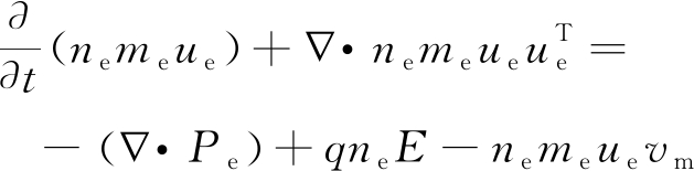 式中:me为电子质量;ue为电子漂移速率;Pe为电子压力张量;q为电荷量;vm为动量传递频率。