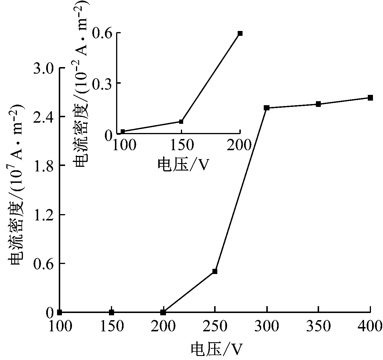 图3 电流密度随电压的变化曲线