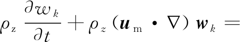 式中:ρz为总混合物粒子数密度;wk为第k个粒子的质量分数;um为流体速度矢量;jk为扩散通量矢量;Zk和Vk分别为粒子k的重粒子反应速率和多分量扩散速度。