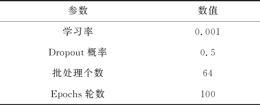 参数数值学习率0.001Dropout概率0.5批处理个数64Epochs轮数100