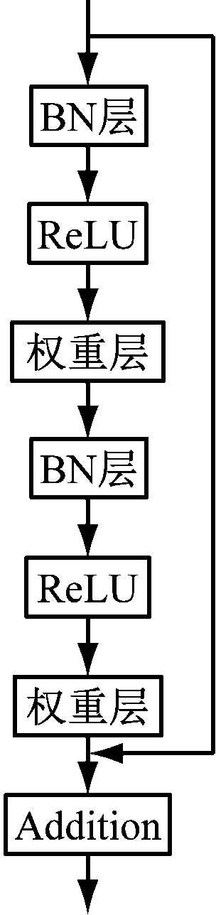 在ResNet中,残差单元模块主要有原始残差单元模块和预激活残差单元模块2种,如图2所示。残差单元模块主要由权重层、批量归一化(Batch Normalization,BN)层和ReLU组成。权重层用于提取特征,BN层用于加快网络训练速度,ReLU用于减少参数之间的相互依存关系,提升网络的非线性建模能力,防止出现过拟合现象。Addition代表求和运算。
