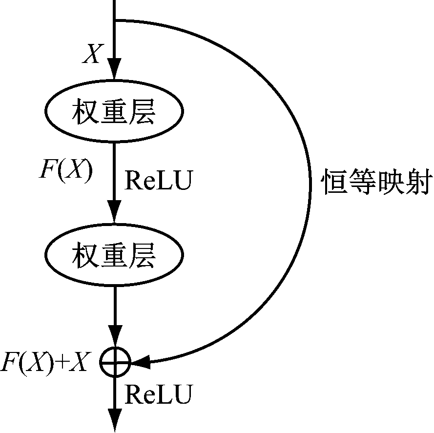 ResNet结构的核心在于残差单元模块,其主要思想是在训练深层卷积神经网络的过程中保存部分原始输入信息,从而转移学习目标,避免由网络深度加大引起的分类精度饱和问题。残差单元学习模块如图1所示,其中X为输入,F()为残差函数。