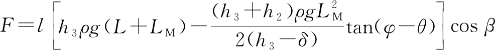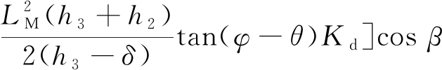 式中: QB为B岩块重力,QB=h3lLMρgcos β;q为B岩块上覆岩层的载荷集度;fB为B岩块滑落时所受的摩擦力,fB=fztan(φ-θ)cos β,fz为岩块间的挤压力;Kd为动载系数,取1.3。