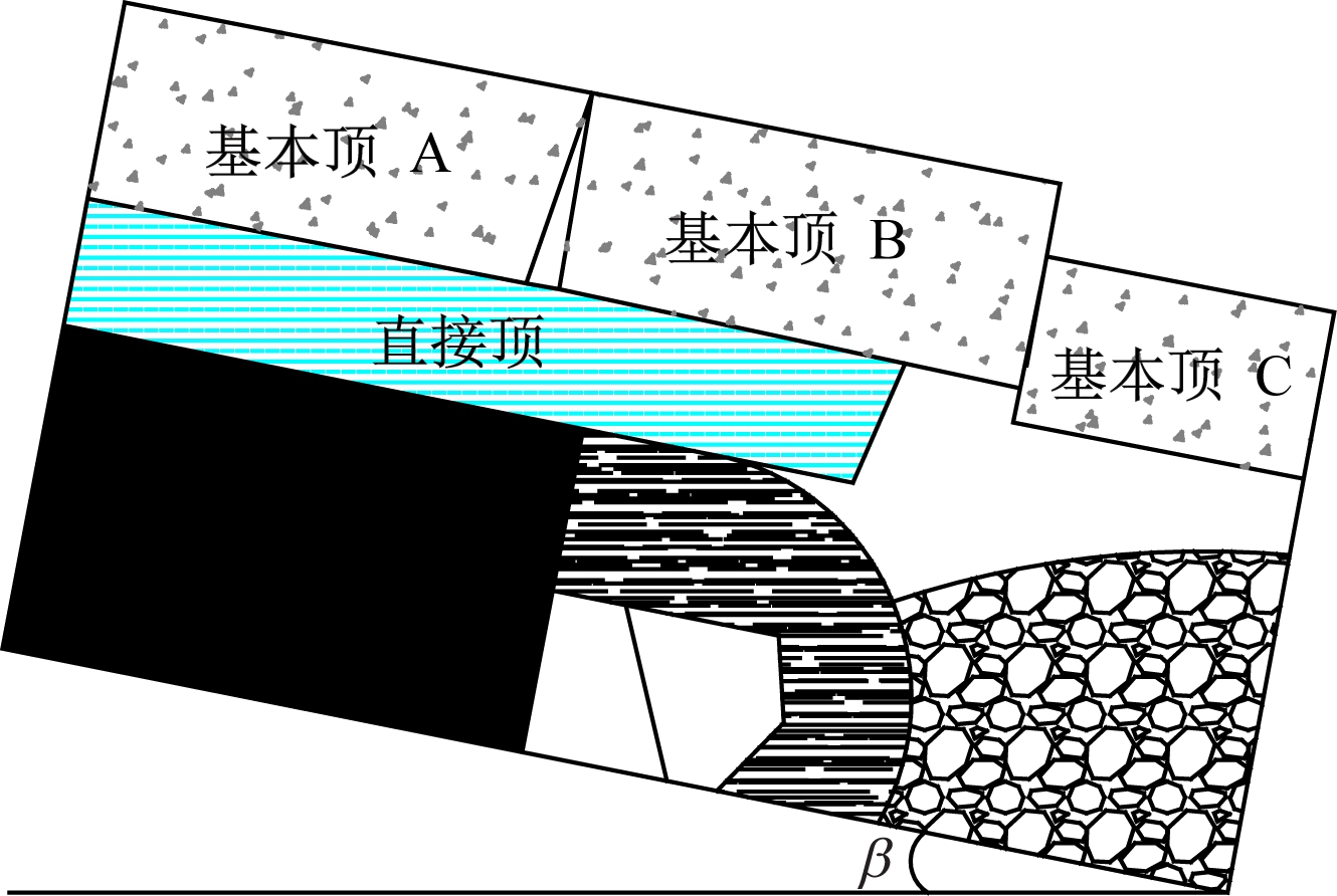 大量实测结果表明,综放工作面支架工作阻力的大小取决于采动影响后直接顶和顶煤传递至支架的变形压力[11-13]。上文根据数值模拟研究了覆岩运移规律,并确定了采动影响下的周期来压步距,为计算支架工作阻力提供了参数。仰斜开采工作面如图5所示,结合目前几类支架工作阻力计算方法[14],考虑其优缺点及实用性,确定合适的支架工作阻力。