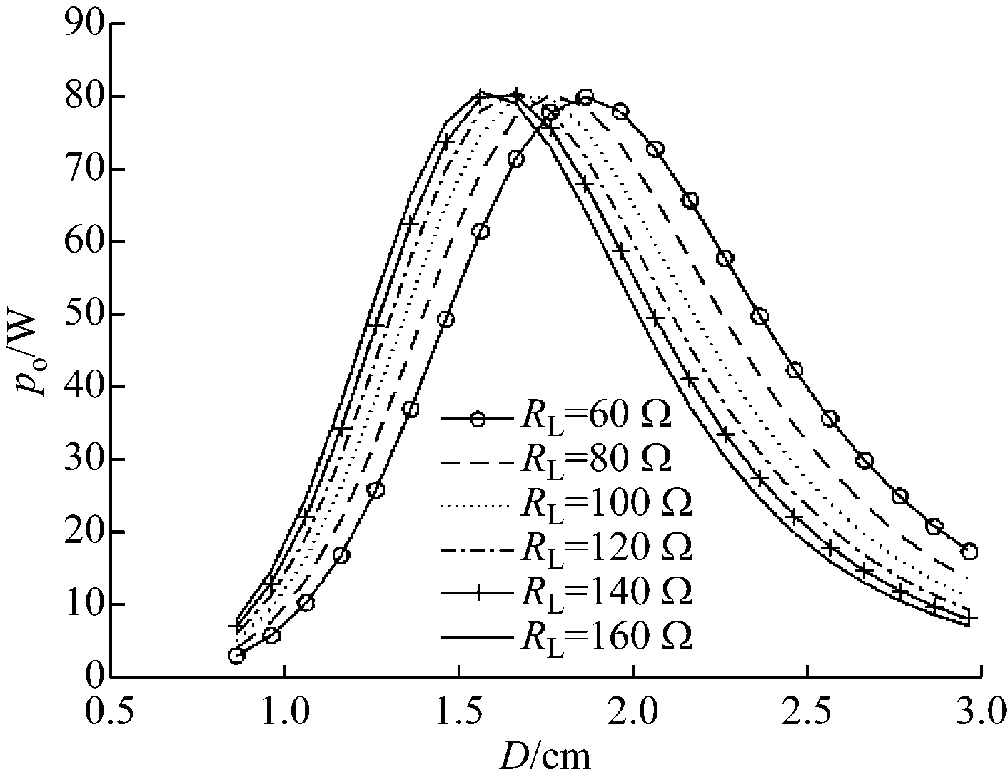 Fig.5 Curves of output power varying with transfer distance and load resistance
