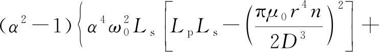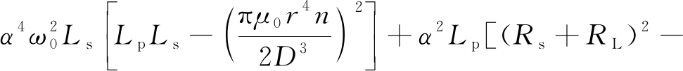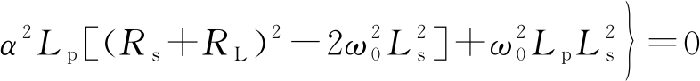 令α=ω/ω0(当α=1时表示系统自然振荡频率与谐振频率一致),将其与式(3)、式(9)代入式(8),可得令原边阻抗虚部为0的表达式: