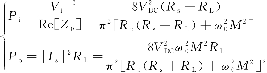 进一步得到谐振时系统的输入功率Pi和输出功率Po: