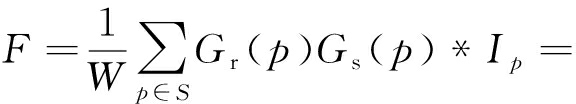 式中:W为滤波窗口内所有像素值权重和,用于权重归一化;S为滤波器内像素点集合。