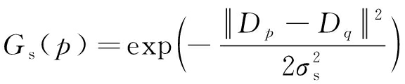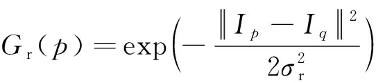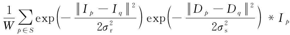 式中:Ip为p点像素值;Iq为滤波器中心点q像素值,q≠p;σr为像素值域标准差;Dp,Dq分别为p,q点位置;σs为空间域标准差。