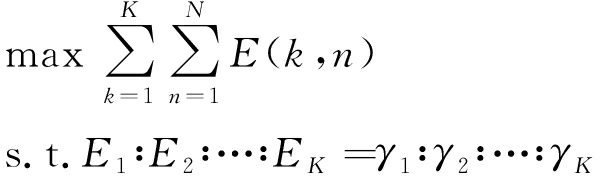 式中:Ek为第k个监测节点在充电周期T内获得的总能量;γk为第k个监测节点分配的能量比例。
