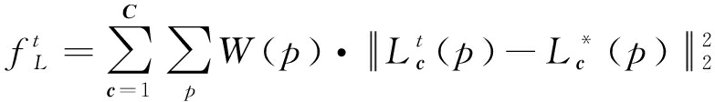为PCM的目标函数,S为PCM的置信度映射,t为视频当前帧数;J为置信度集合;j为当前置信度;p为图像位置;W(p)为模型参量,当图像位置p缺少标定内容时,W(p)会变为一个二进制掩码,用于引导模型正确拟合;