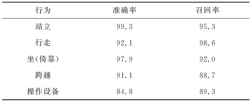行为准确率召回率站立99.395.3行走92.198.6坐(倚靠)97.992.0跨越91.188.7操作设备84.889.3