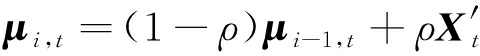 ωi,t=(1-α)ωi,t-1+αMi,t
