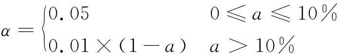 在建模前期(0≤a≤10%),监控场景中没有运动目标,根据理论及实验分析,设定一个较大的模型学习率0.05;而在建模后期(a>10%),运动目标进入监控范围内,根据运动目标在场景中的像素占比动态调节模型学习率。