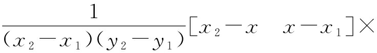 双线性插值是对二元插值函数的扩展,其主要思想是分别在x, y方向进行一次线性插值,如图1所示。
