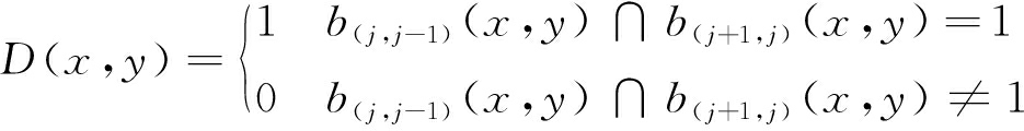 对得到的2个差分图像进行“与”运算,得到结果图像D(x,y):