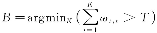 式中T为判定高斯分布是否可作为背景模型的最低阈值,一般取0.9。