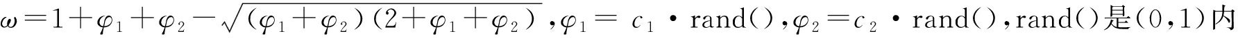 学习因子,一般取c1=c2=2.05,则χ=0.729 84;ω为惯性因子,