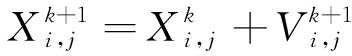 (j为粒子搜索的空间维度,k为当前迭代次数)。速度和位置的更新公式为[1,11-12]