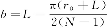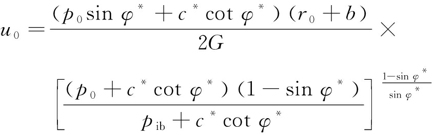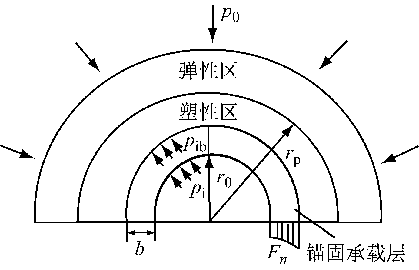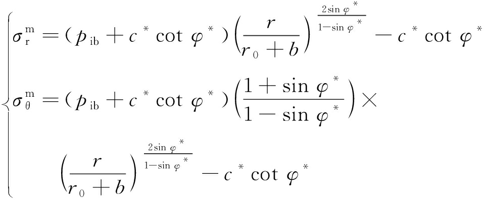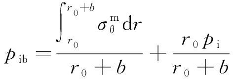 在锚固承载层范围内,巷道围岩支护形式发生了变化[14],塑性区受到的支护力由初始支护阻力pi转变为锚固承载层等效支护力pib,巷道半径由r0转变为r0+b。