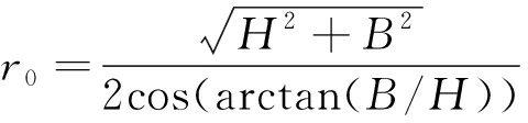 式中:H为巷道断面高度,m;B为巷道断面宽度的1/2,m。