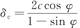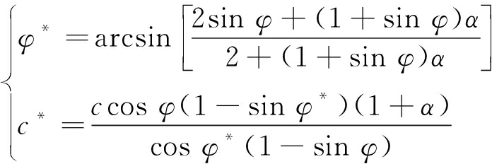 应用Mohr-Coulomb屈服准则,结合屈服轨迹梯度关系,根据反三角函数计算支护后锚固承载层的等效内摩擦角φ*和黏聚力c*。