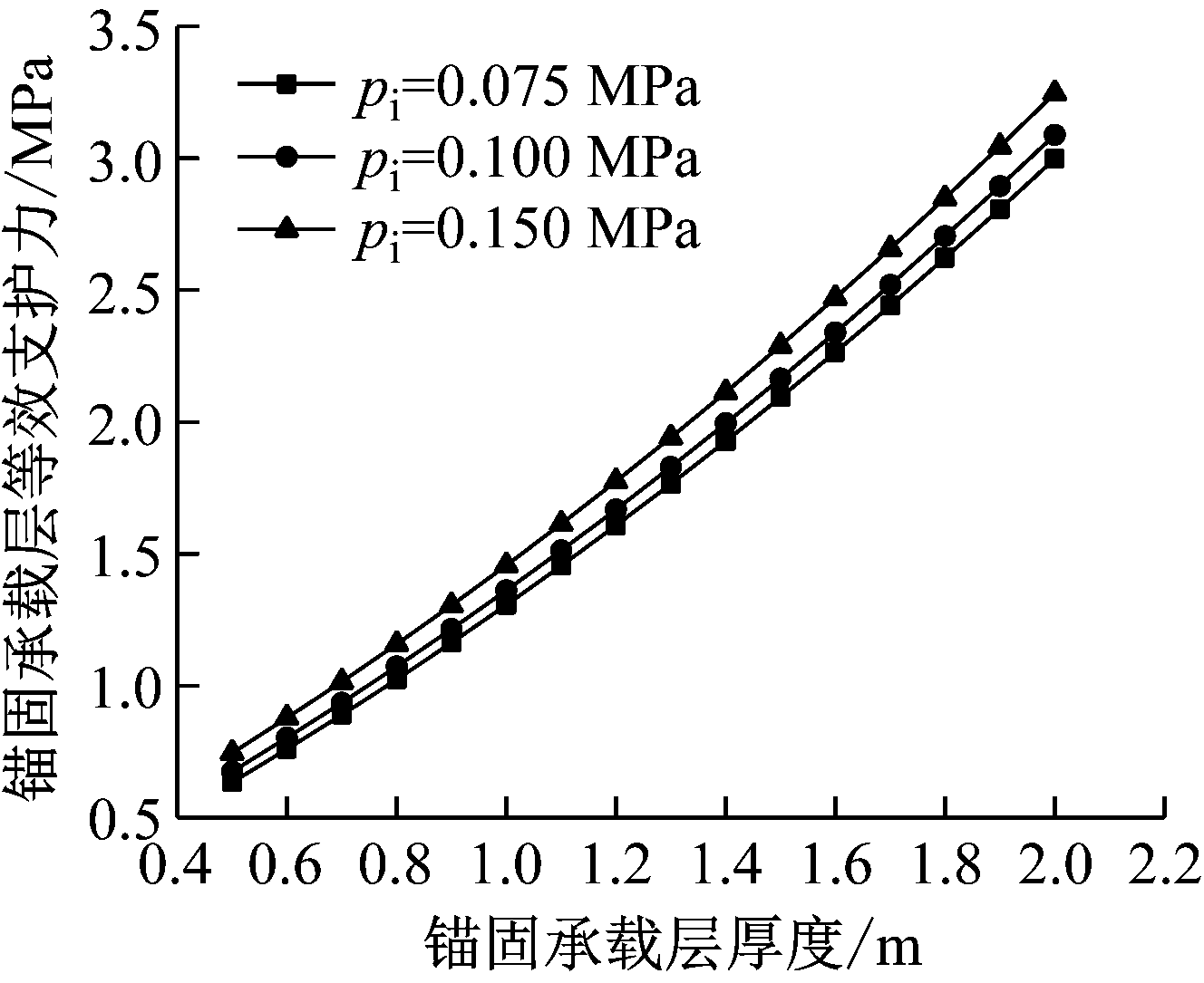 (1) 锚杆长度增加时,锚固承载层厚度随之增大;锚杆长度一定时,随着锚杆排距的增加,锚固承载层厚度减小;锚固承载层等效支护力随着锚固承载层厚度的增大而增大。