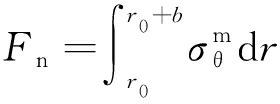 假设图1所示的力学模型处于平衡状态,通过Mohr-Coulomb屈服准则计算锚固承载层外边界所提供的支护强度[10]。