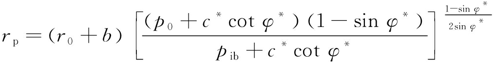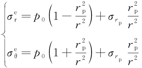 为弹性区围岩径向应力,MPa;rp为塑性区半径,m;σrp为弹塑性交界面(r=rp)围岩应力,