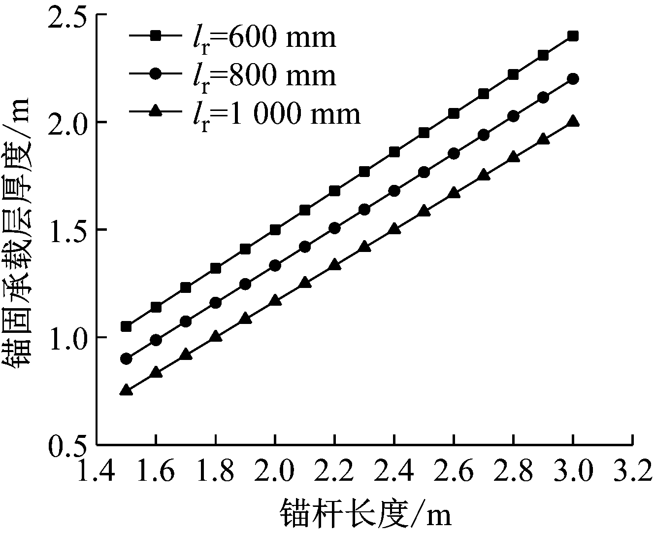 图3 锚固承载层厚度与锚杆长度关系曲线