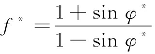 式中φ*为锚固承载层的等效内摩擦角,(°)。