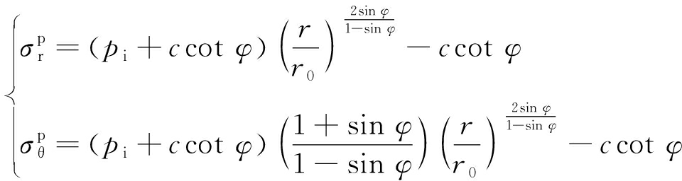 对于不考虑锚固承载层的Fenner解,在弹塑性交界面(r=rp)时塑性区应力为