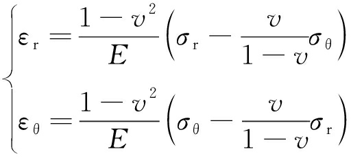 式中:εr为围岩径向应变;v为泊松比;E为围岩弹性模量,GPa;εθ为围岩切向应变。